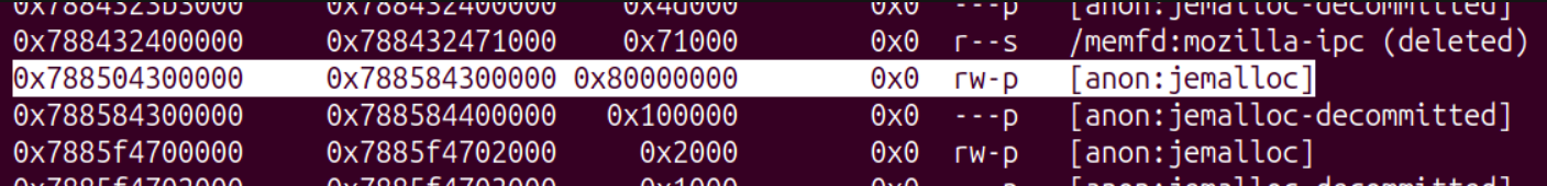 The memory map of the program, showing the relevant heap allocation with size 0x80000000: