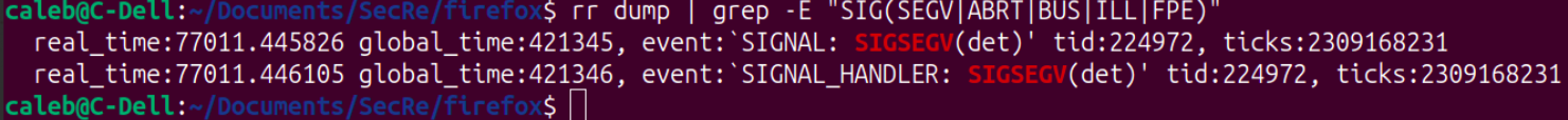 rr dump | grep -E "SIG(SEGV|ABRT|BUS|ILL|FPE)" - Note the global time of the fault.